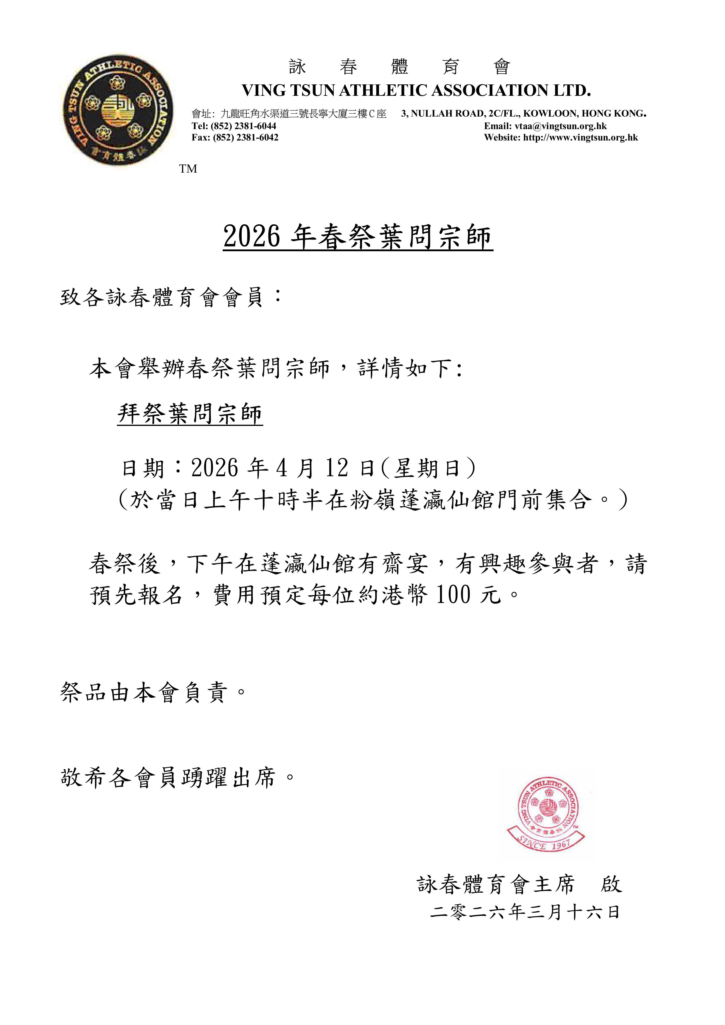 | Mar 2026 | 春祭葉問宗師 |